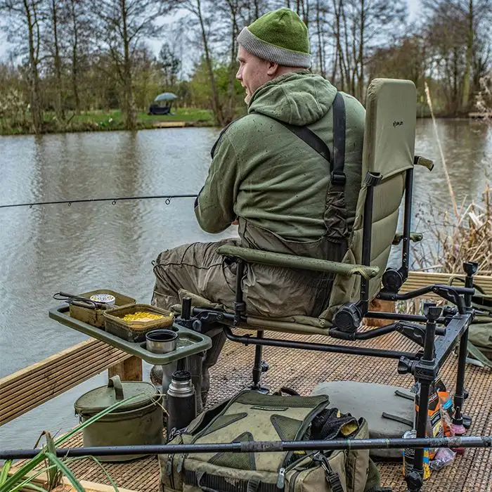 Wenn Sie den ganzen Tag hindurch vollständigen Komfort gewährleisten und eine Reihe von Zubehörteilen in Reichweite haben möchten, dann ist dieer S23 Accessory Stuhl eine stilvolle und bequeme Einrichtung. Ein völlig verstellbares Beinsystem ermöglicht verschiedene Höhen, die Beine mit einem Durchmesser von 25 mm sitzen auf einem schnell zusammenklappbaren Rahmen, der einen leichten und einfachen Auf- und Abbau ermöglicht. Der Rahmen erleichtert auch das Einhängen einer Reihe von Angelzubehör, sodass Sie bequem aus nächster Nähe angeln können, ohne bei einer Tagessession fehl am Platz sind.
