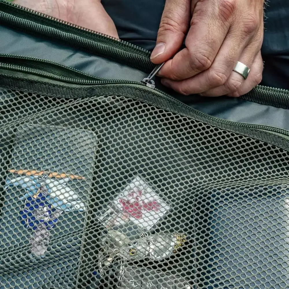 Die Transition Session Carryall ist die perfekte Allzweck-Tasche für Angler, die ein traditionelles Schultergurt-Design einem Rucksack vorziehen. Man kann ihn einfach über die Schulter hängen oder auf die Schubkarre legen, das Carryall-Design ist ideal für viele moderne Angler. Das Hauptfach ist groß genug, um genug Ausrüstung für längere Sessions unterzubringen, aber seien Sie versichert, dass die Tragetasche die richtige Größe hat, sodass Sie nicht damit kämpfen müssen, sie zu tragen.