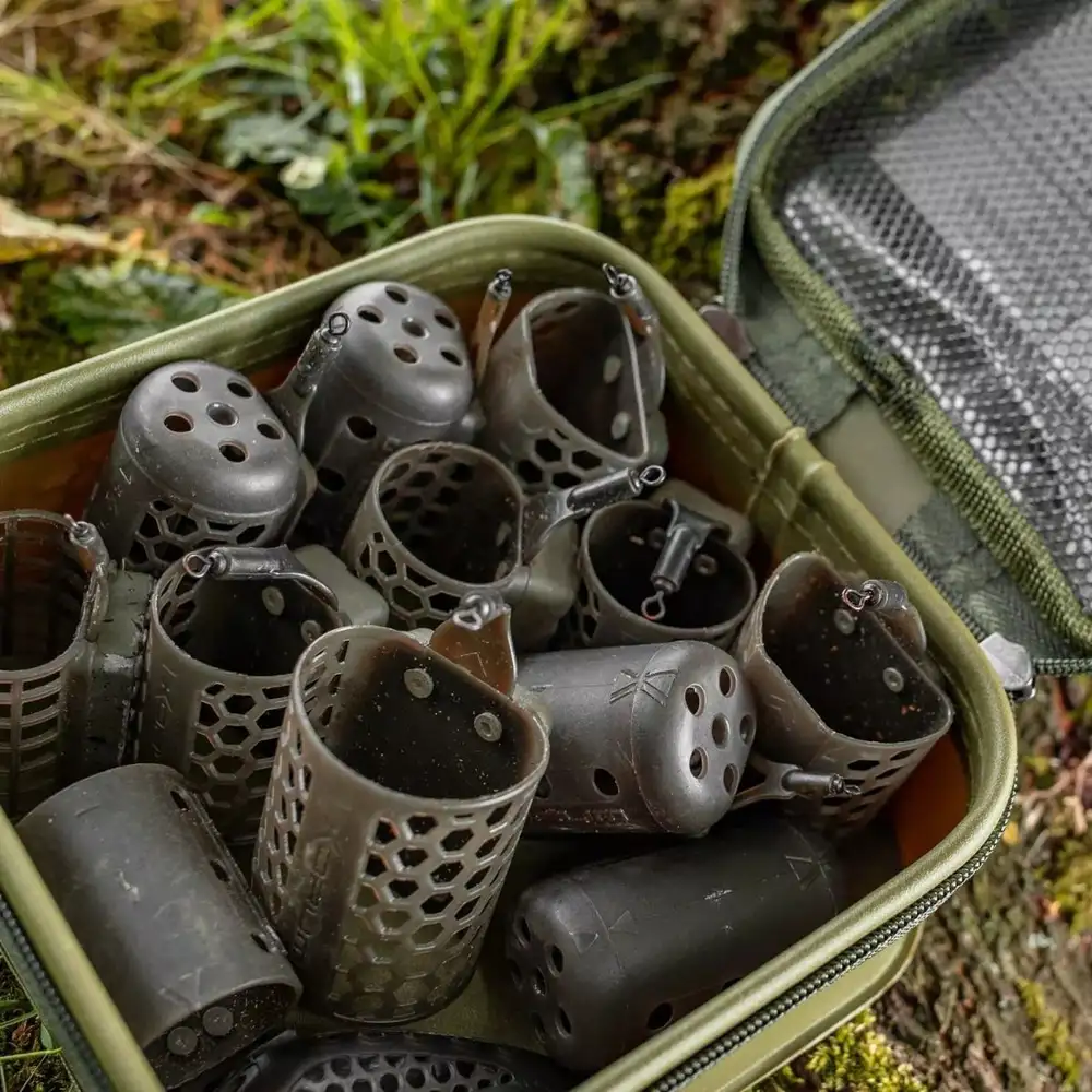Die Korum Transition EVA Zubehörtasche in der mittleren Größe bietet viel Platz für sämtliche Feeder und Köderzubehör. Sie besteht aus 0,8 mm starkem EVA-Material, das unglaublich robust und widerstandsfähig ist, mit einem praktischen Reißverschlussfach im Deckel für zusätzliche Gegenstände.
